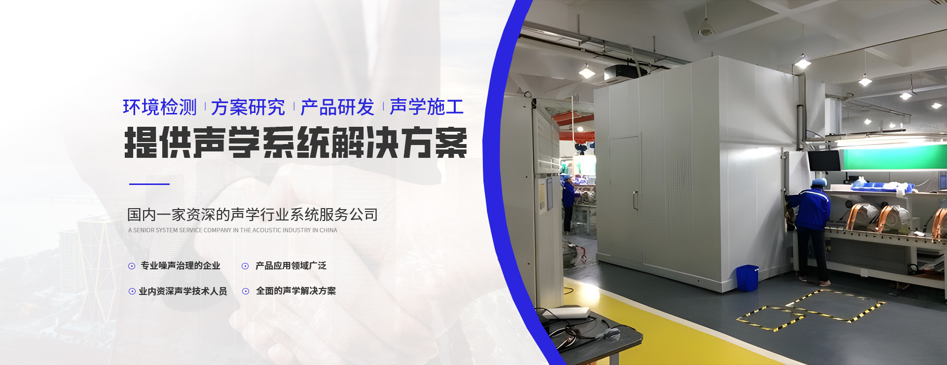 常州歐弘環保科技有限公司是一家專注噪聲治理的企業,公司專注生產銷售各種隔音房,隔音箱,靜音房,沖床隔音房,隔音罩,消聲室等隔音產品。客戶涵蓋汽車、家電、醫療、健身器械等眾多行業。  我公司專注于為客戶提供聲環境深度檢測;聲學方案研究、設計;聲學產品研發、優選;聲學施工與驗收的一整套聲學系統解決方案,是國內成熟的聲學行業系統服務公司。  我們的服務領域:致力于研究并開發高性能、高性價